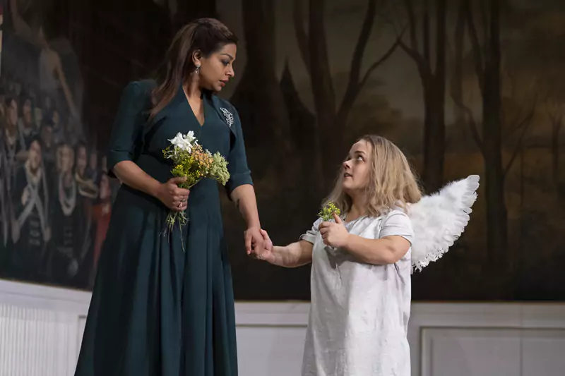 Abeysekera has starred in Life of Pi (winning an Olivier Award) and The Father and the Assassin (at the National Theatre, directed by its new artistic director Indhu Rubasingham), as well as playing Horatio to Paapa Essiedu’s Hamlet for the RSC in 2016. He has taken a conscious decision – he must have been indulged in this by Hastie – to play Hamlet in a knockabout and doolally (almost gurning) manner from the off. But this makes nonsense of the prince telling us some way through that he is going to “put an antic disposition on”. I thought of the maxim in the play that, “Words without thoughts never to heaven go.” Only when debating constantly whether the dapper varsity-looking Rosencrantz (Hari Mackinnon) and Guildenstern (Joe Bolland) are spies who have been sent for by his parents to report on his behaviour did I see Abeysekera crediting his character with serious reflection.