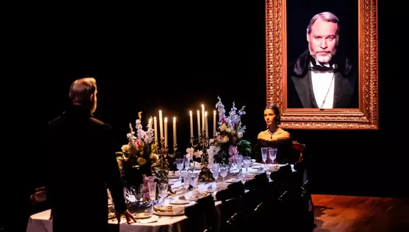 Direction by Christopher McElroen is unobtrusive; there is no artifice and a huge gilt frame containing a projected painting of Chase’s first wife is occasionally swapped for period posters or billboards as a simple means of exposition (designer Neal Wilkinson). It worked and I wondered if there could have been more of it by way of context and information on the future fates of the characters.
