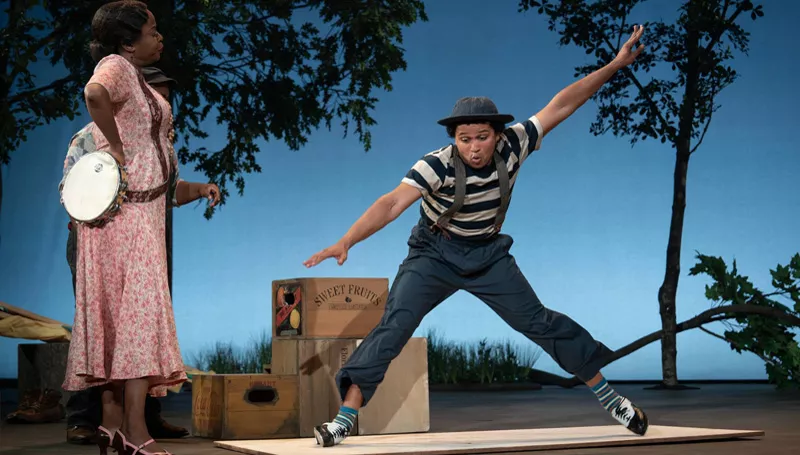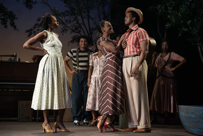 What Hurston does better than Donizetti —much better—is regale us with the everyday behaviour of her characters. Hurston’s ear for authentic speech and music is flawless, trained on years of fieldwork in the South. It’s not just the dialect she captures; her people have a uniquely elastic sense of metaphor and simile that is entertaining in itself. (The proprietor of a leaky rowboat available for hire is called “Admiral.”) She’s also unbeatable on southern festivities and games. Spunk incorporates a “toe dance” in which the women hide behind a curtain with only their toes visible. The men can “purchase” a toe for a dime and then treat the attached woman like royalty. (The choreography is by nicHi douglas.)