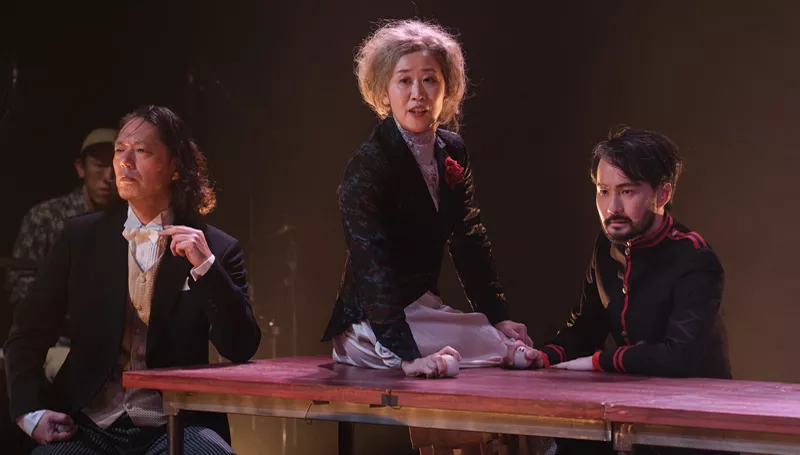 The Coronet’s revolve is sent into overdrive to suggest the roulette table, and the incantatory and propulsive rhythm never lets up. The revolve is pushed by protagonist Alexei (played by Takahide Akimoto) who is a young tutor from a lower social class than his Russian employers who form the bulk of the characters. His wallet may not be as capacious as those of the aristocrats, but his gambling addiction is just as strong.