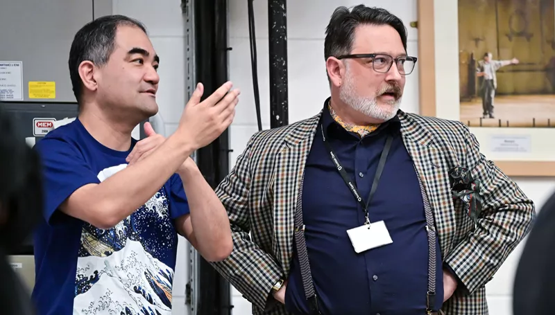 Photo as thumbnail and at top of article shows the interviewee, composer Dai Fujikura, with librettist Harry Ross in rehearsals.