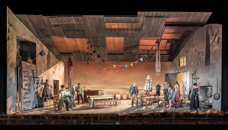 Éanna Hardwicke (award-winner for playing a creepy, true-life murderer in TV’s The Sixth Commandment) is a beguiling Christy, an unreliable narrator full of wide-eyed naivety who reinvents himself, but he seems too weakly passive to engender such female adulation. Nicola Coughlan (best known for Bridgerton and Derry Girls) gives Pegeen Mike a feisty spirit and ends heartbroken having lost her romantic ideal. Siobhán McSweeney (also in Derry Girls) is delightfully funny as the manipulative Widow Quin on the lookout for a new young husband. Declan Conlon plays the indestructible hot-blooded Old Mahon, Marty Rea is an amusingly pusillanimous Shawn Keogh, and Lorcan Cranitch pulls out all the stops to make landlord Michael Flaherty’s drunken rant as incoherent as possible.